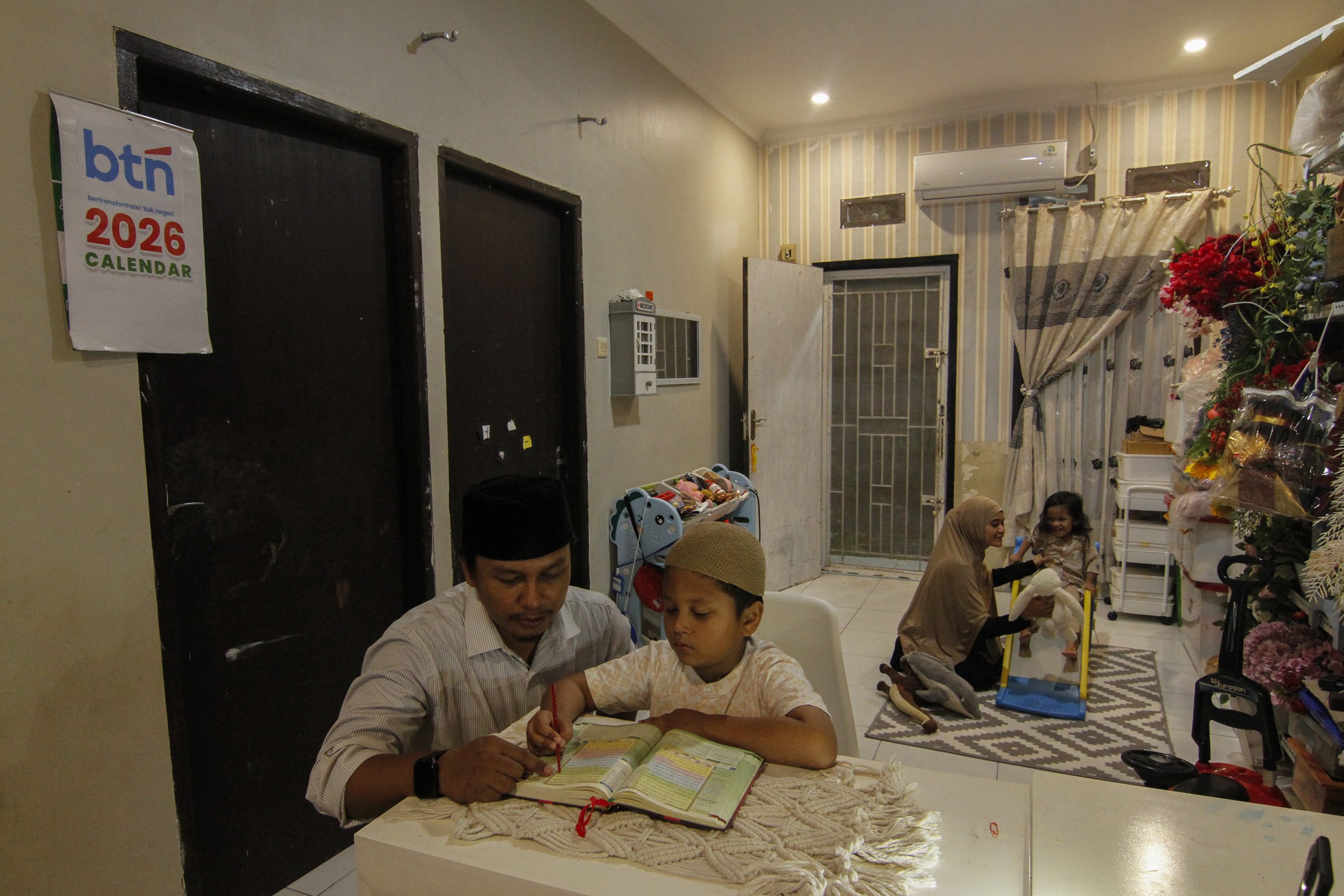 Suasana kebersamaan keluarga di Perumahan Puri Indah Kualu, Tambang, Kampar, Riau, Rabu (18/2/2026). Orang tua mendampingi anak belajar membaca Al-Qur’an di bulan Ramadan dan bermain dengan ceria di rumah, menjadi potret nyata peran Bank Tabungan Negara (BTN) dalam menghadirkan hunian nyaman melalui kemudahan KPR, inovasi layanan, dan komitmen melayani negeri. (Voiceriau.com/Hadly Vavaldi) Perbesar